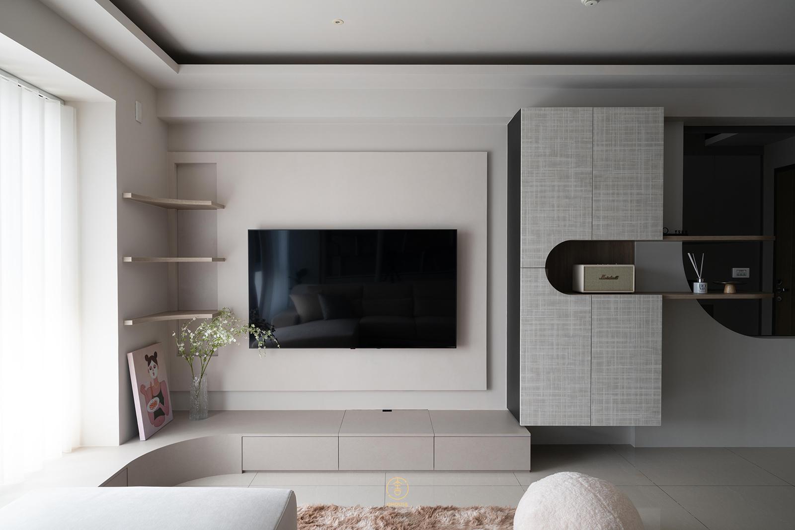 走進《緩光。雙生 Dual Serenity》,第一眼就是一種「鬆弛感」。空間以奶油色調作為基底,搭配低飽和色彩與木紋點綴,整體風格揉合法式的慵懶氣質與現代簡約的節奏。弧形線條的牆面、天花轉角與拱門造型,讓視線滑過也多了溫柔的過渡,讓生活在其中的人,總能在細節中感受到設計的貼心。