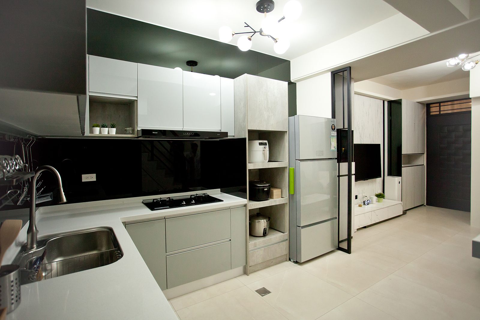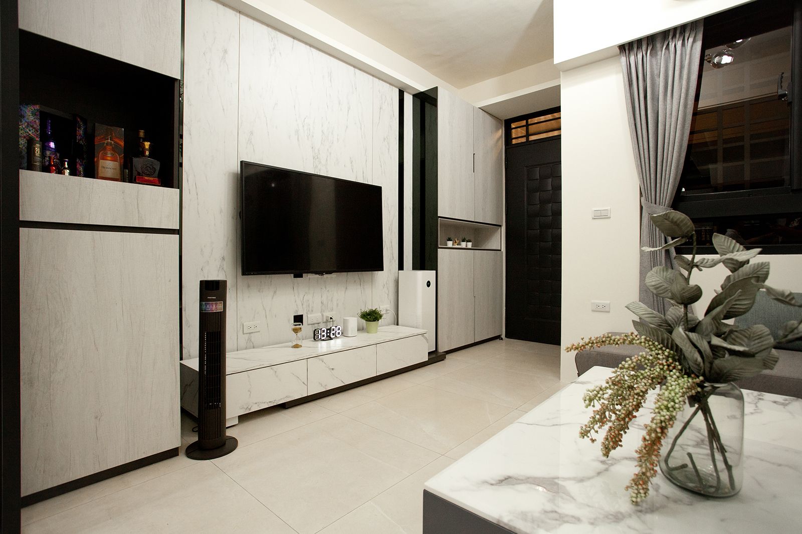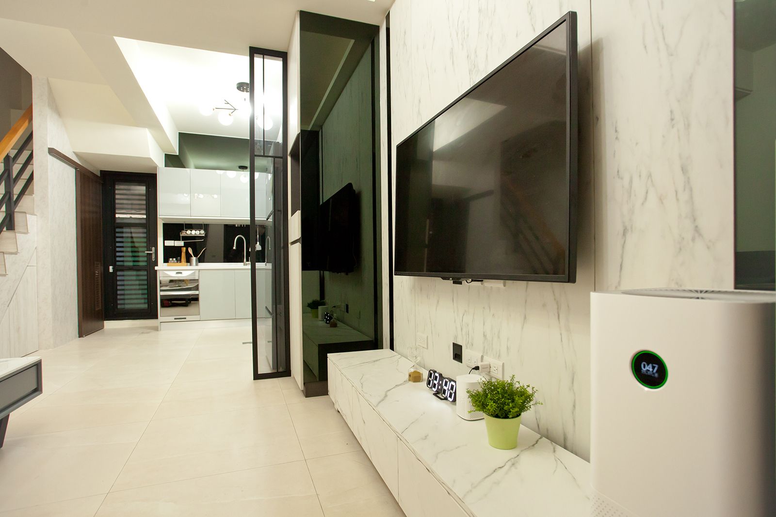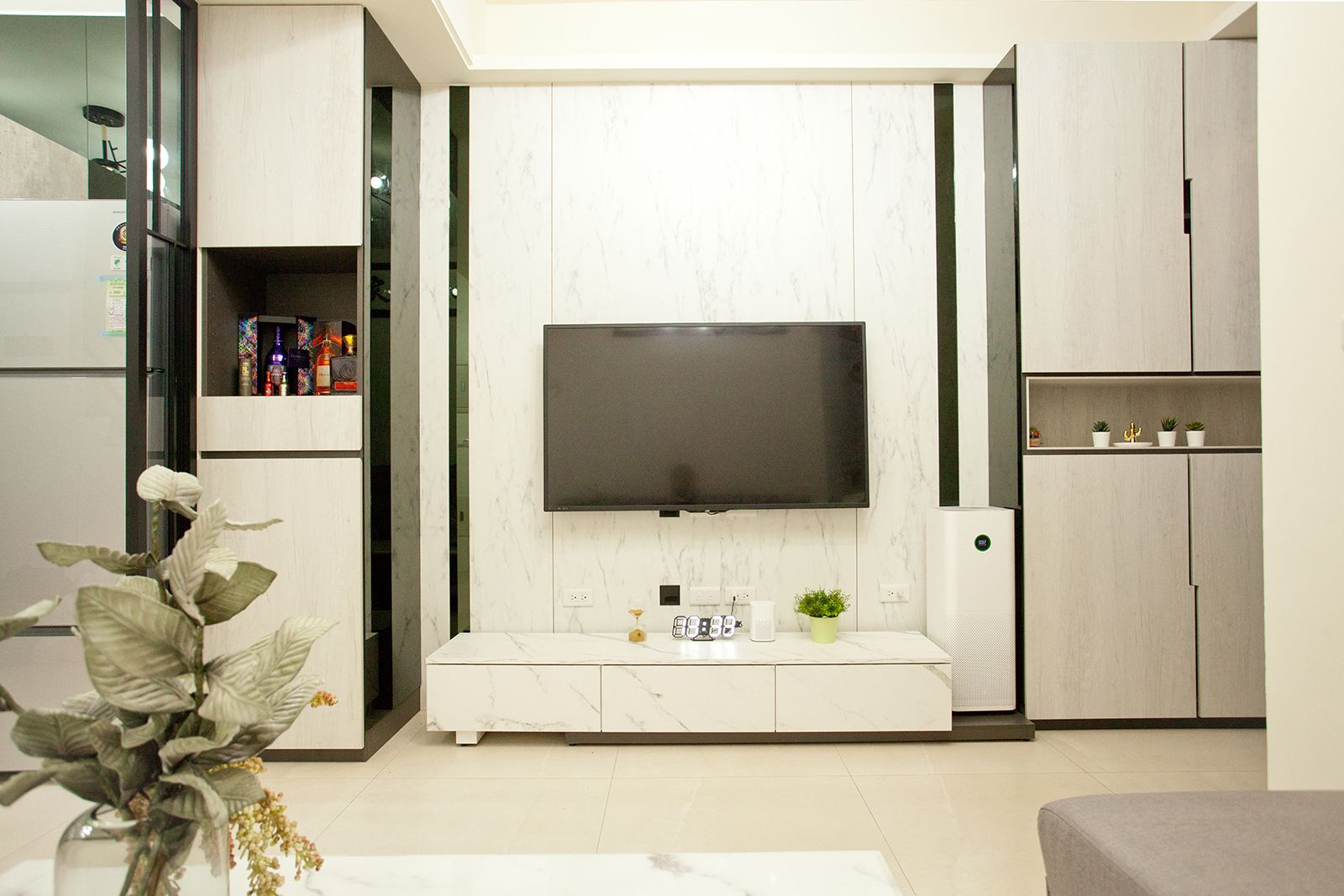 鐵件、特白大冰柱、茶鏡與立體紋路石紋美耐板
