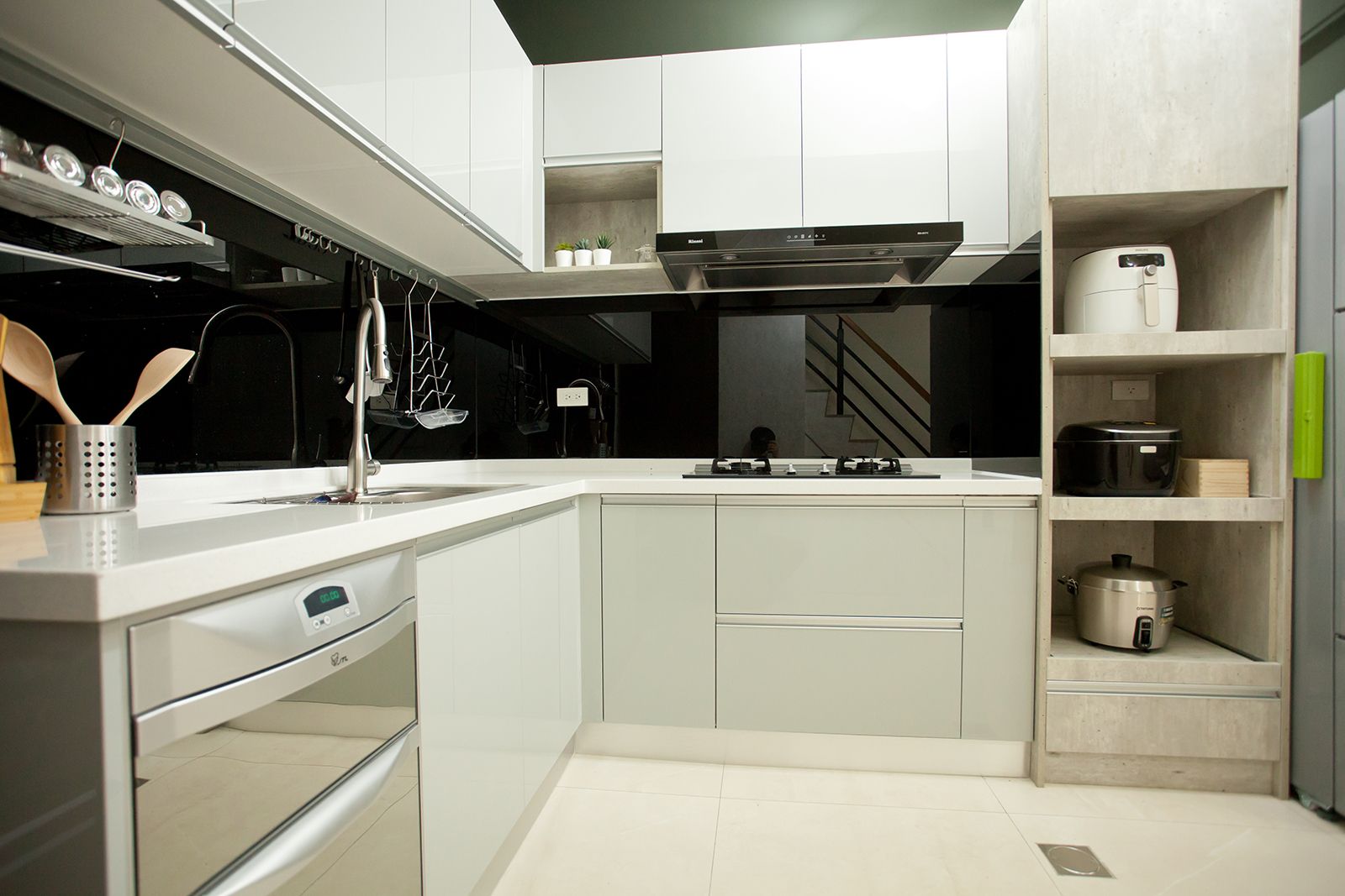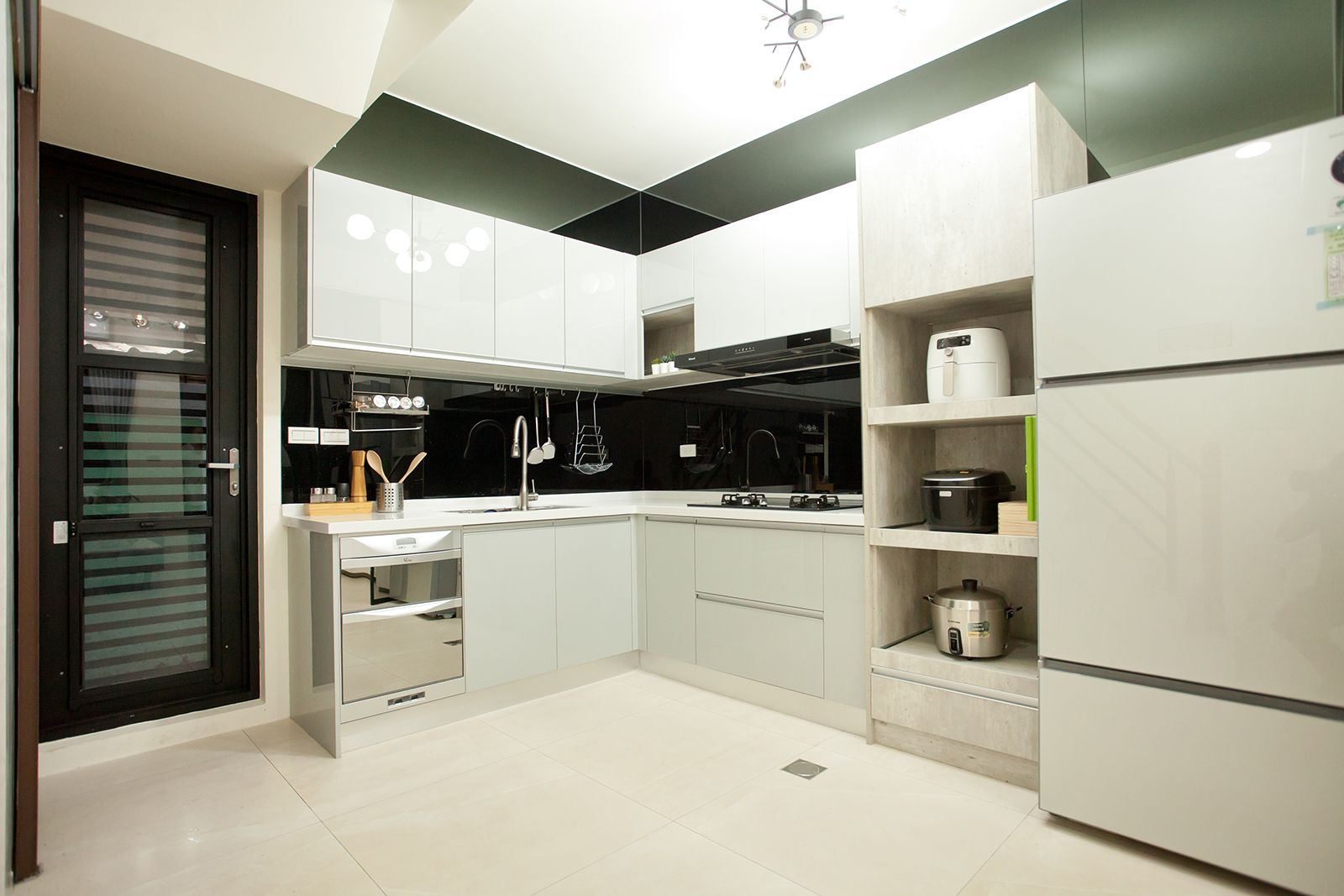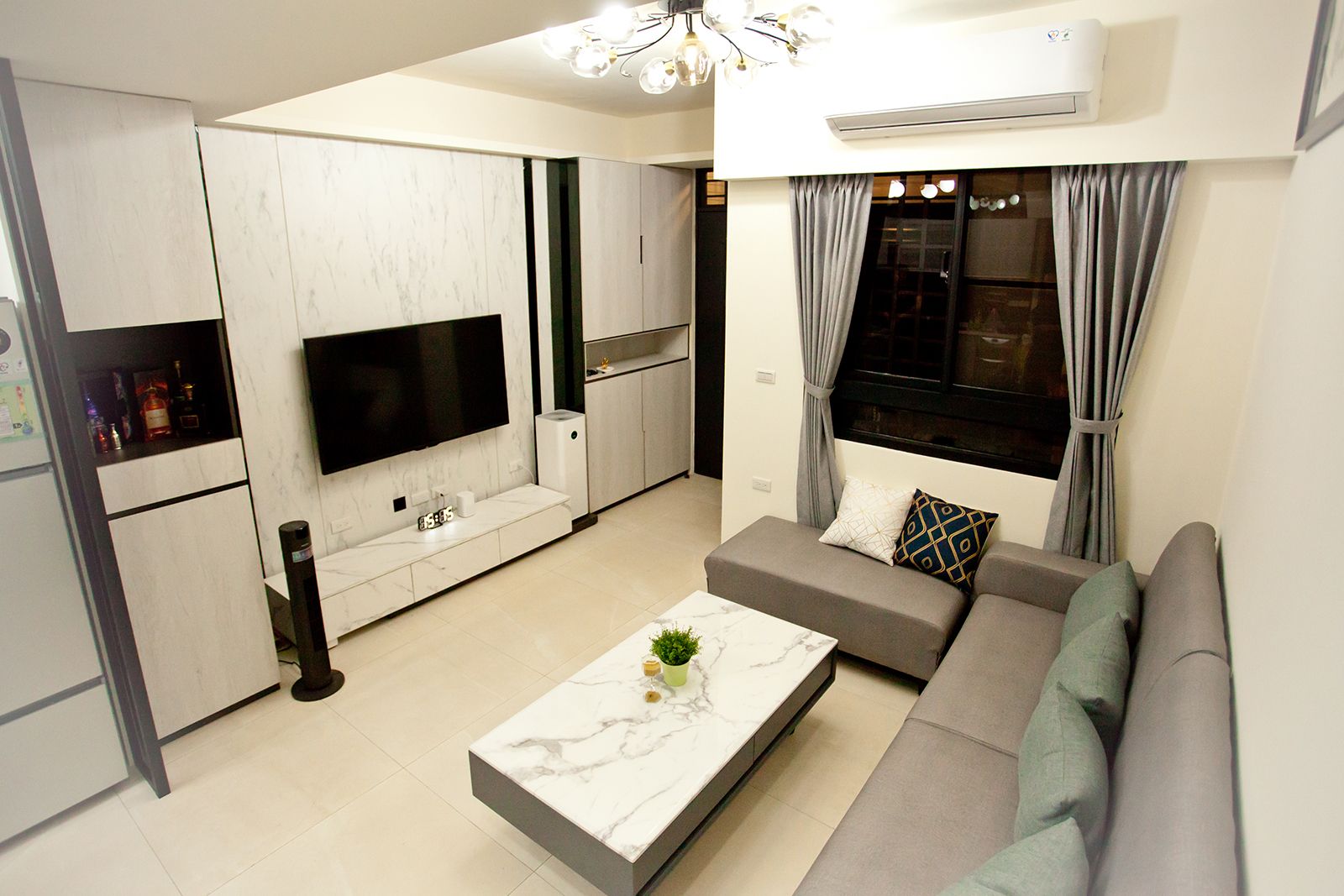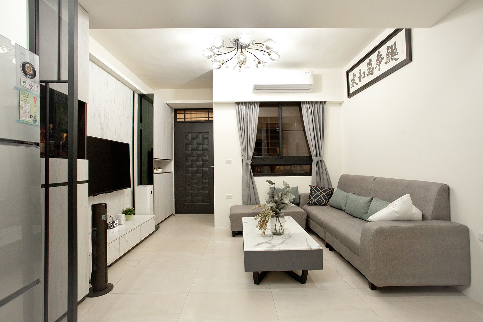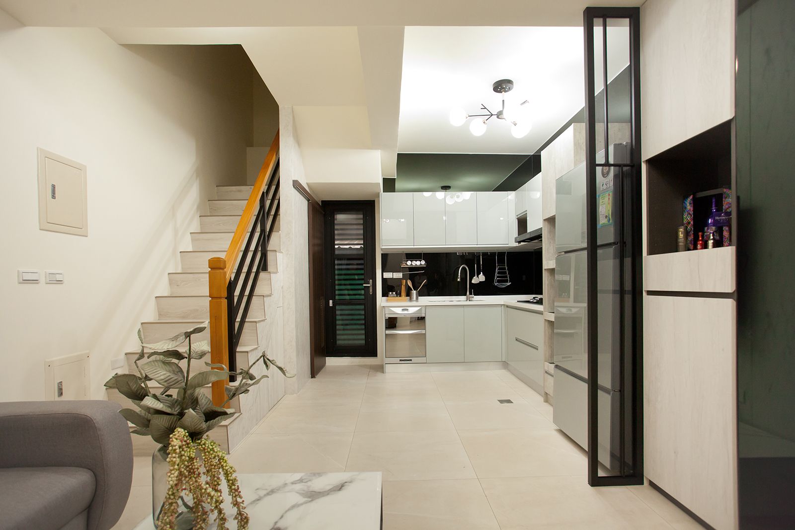 鐵件、特白大冰柱、茶鏡與立體紋路石紋美耐板