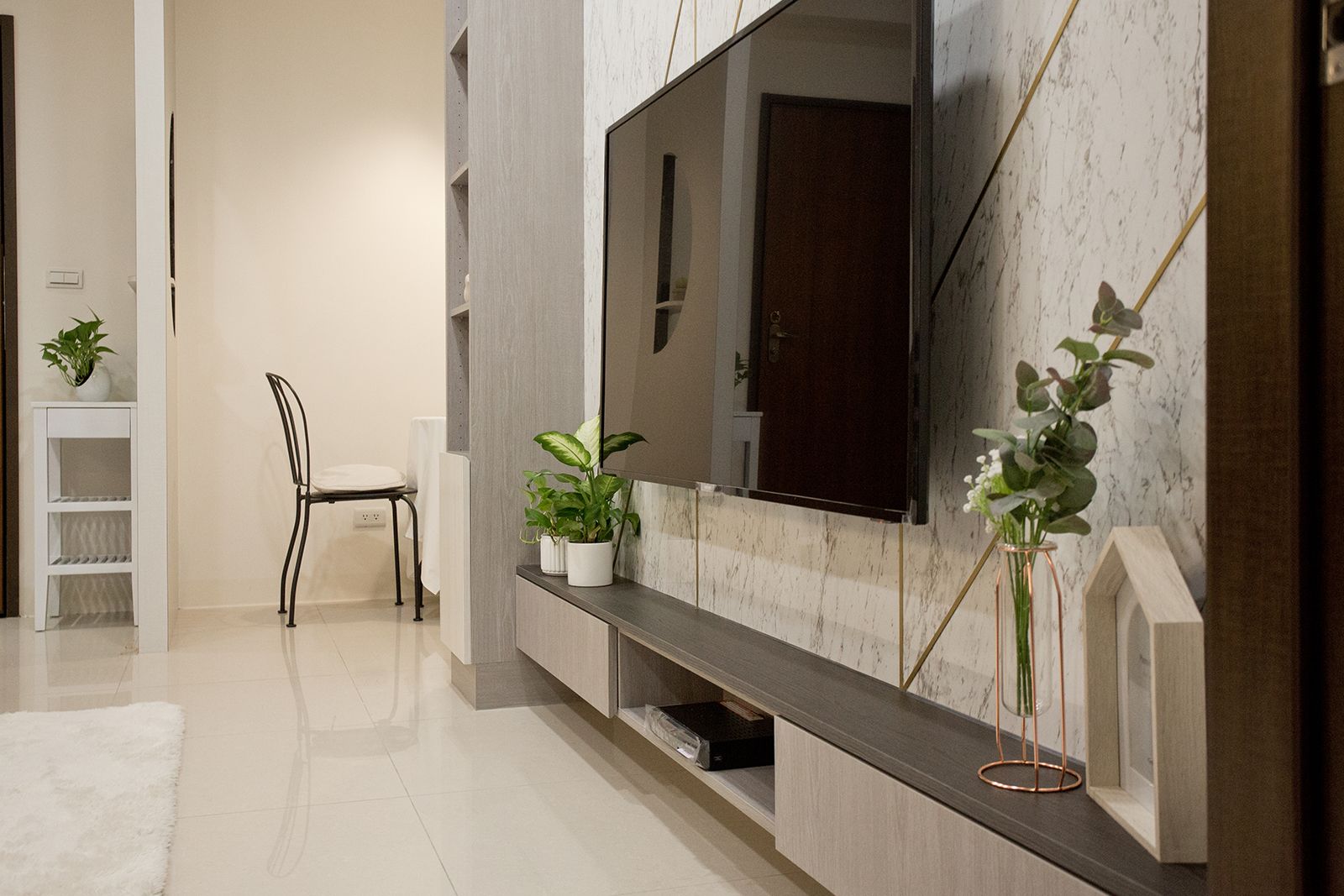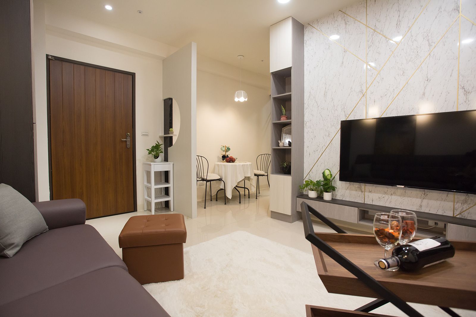 鐵件、特白大冰柱、茶鏡與立體紋路石紋美耐板